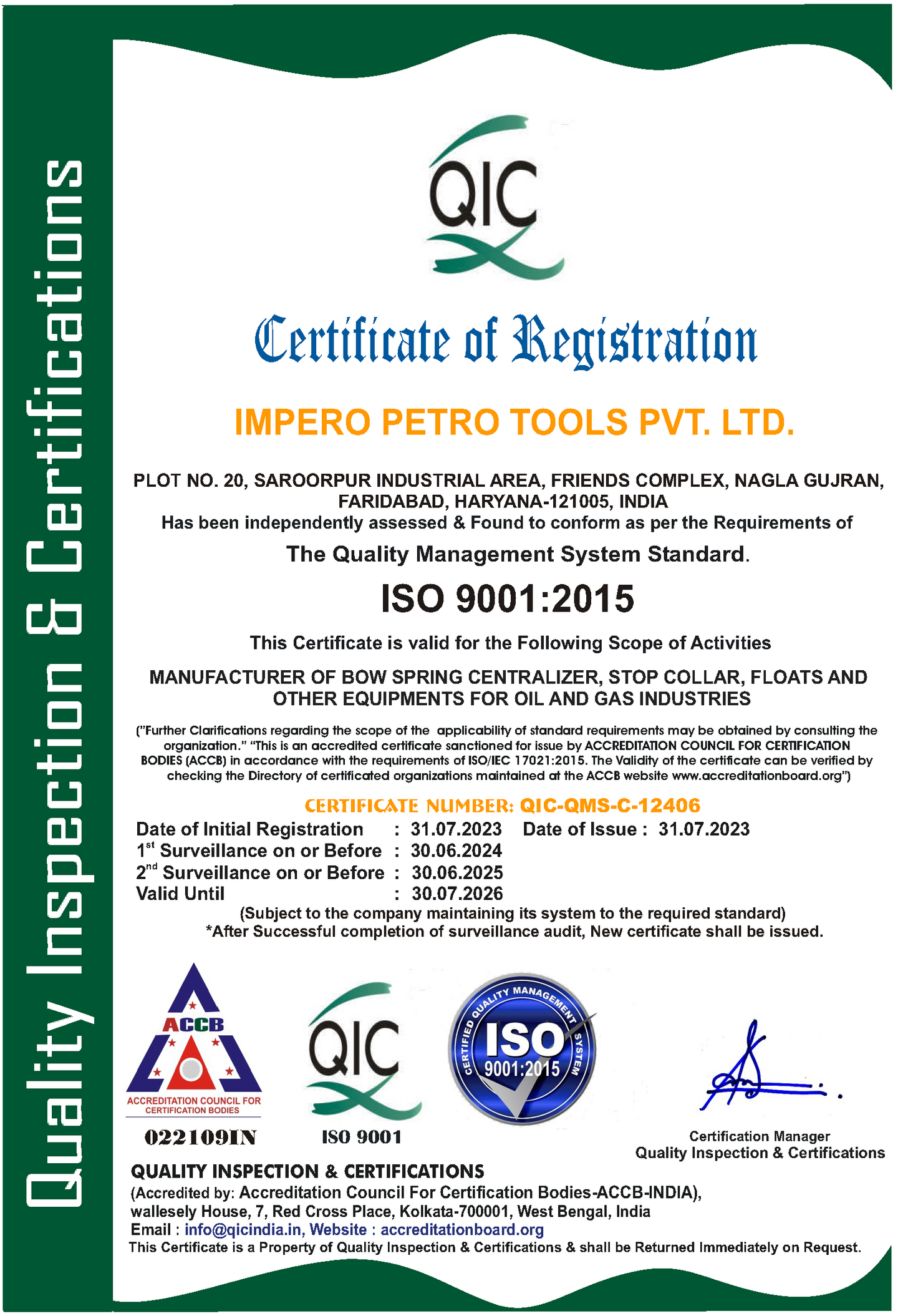 Impero Petrol Tools is committed to achieve organizational excellence by integrating the continual avant-garde improvements in all the business processes including the Quality, Health, Safety & Environmental protection. The company adheres to all the quality standards prescribed by API Q1 and ISO 9001. The quality procedures are strictly adhered to at all stages of the manufacturing.